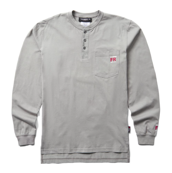 Wolverine #1212410 Men's Flame Resistant Long Sleeve Henley 6.0 oz T-shirt
